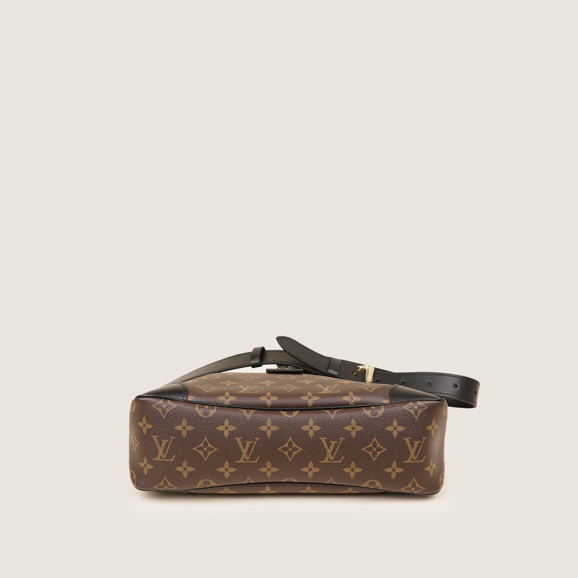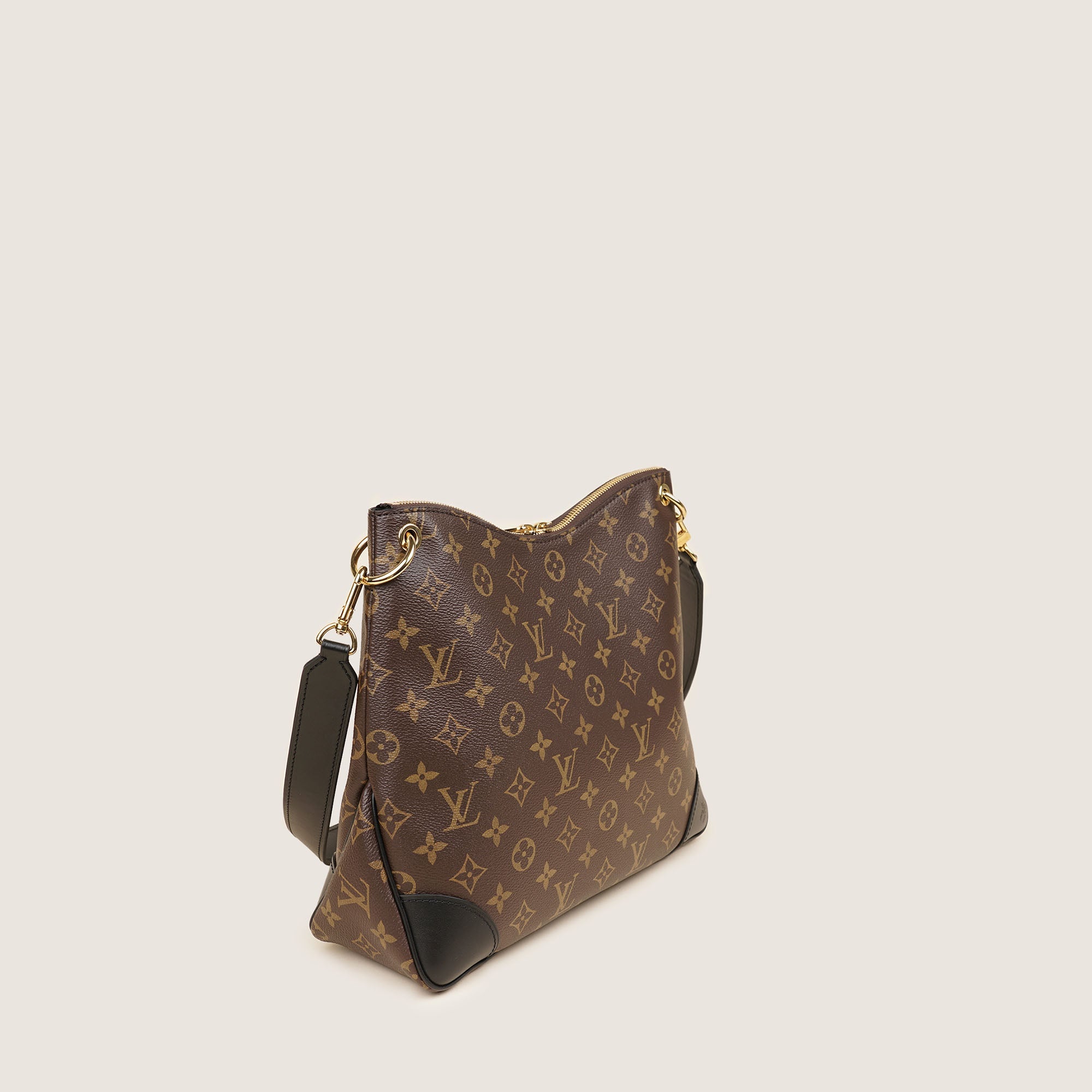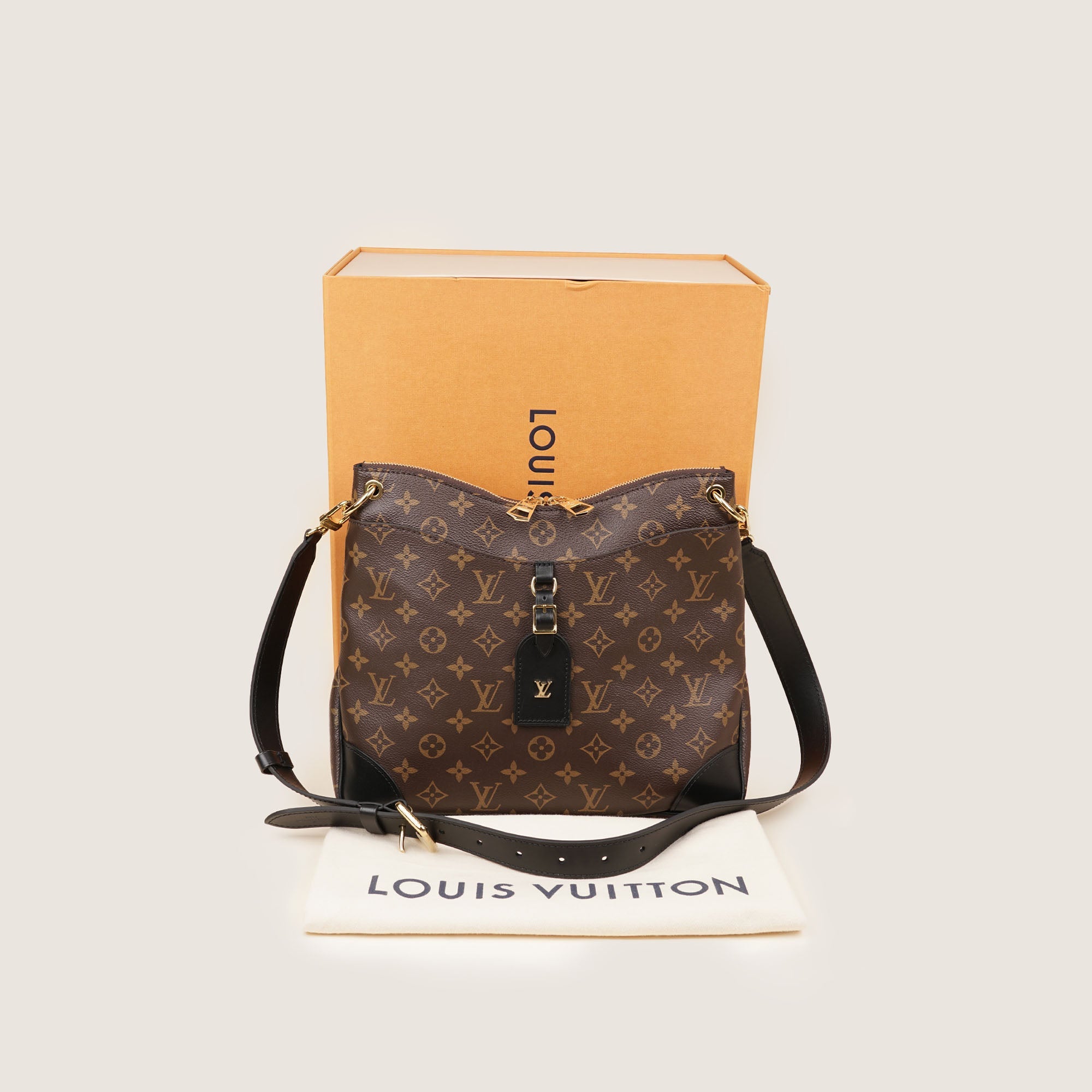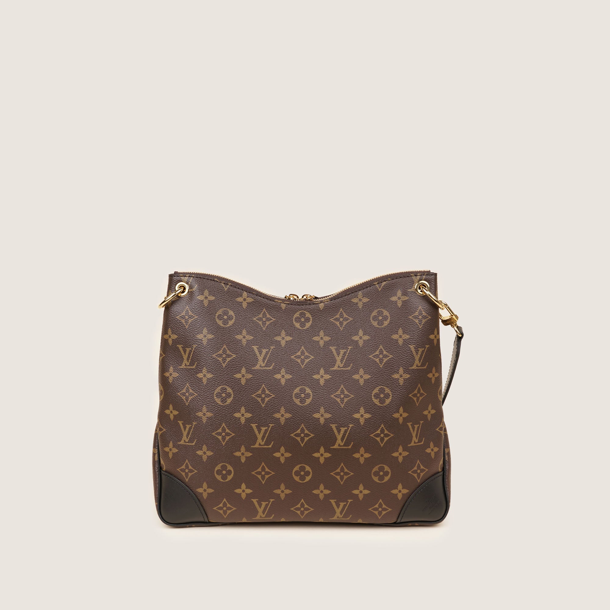 Introducing the stylish. feminine and functional Odéon MM shoulder bag. With reinforced leather corners and Monogram canvas. this bag boasts retro charm. Its adjustable leather strap allows for shoulder or cross-body carry. while the double zip closure and outside pocket with magnetic closure provide easy access to your belongings. Don't miss out!