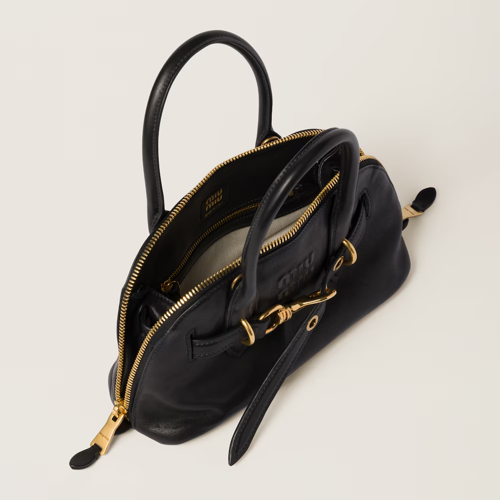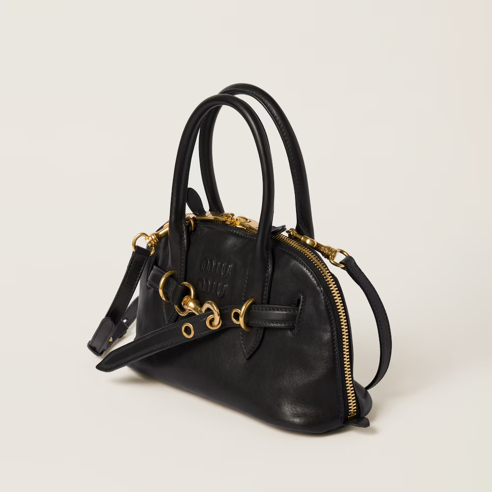 Inspired by Miu Miu's collection. this Aventure Nappa leather handbag has been adjusted to make it lighter and more personalized. creating a classic bag with meaningful charm. Decorated with embossed letter logo to increase brand recognition.